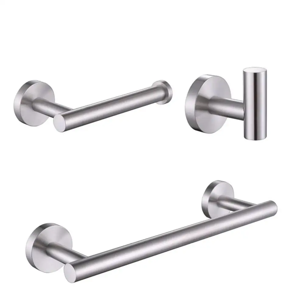 TOP 3pcs Stainless Steel Brushed Nickel Wall Mount Bath Hardware Sets Towel Bar Robe hook Paper Holder