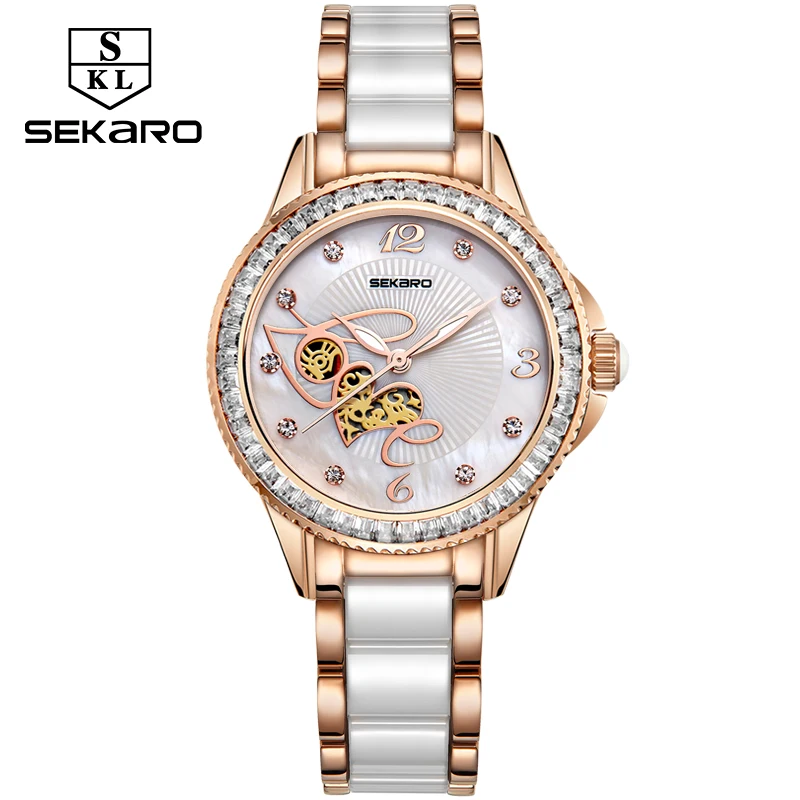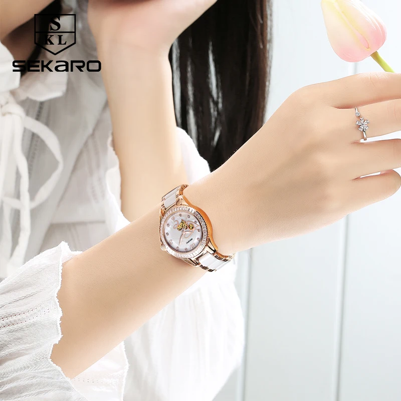 SEKARO Women Ceramic Rhinestone Clock Love Design Watch Women's Wristwatch Top Brand Luxury Women W