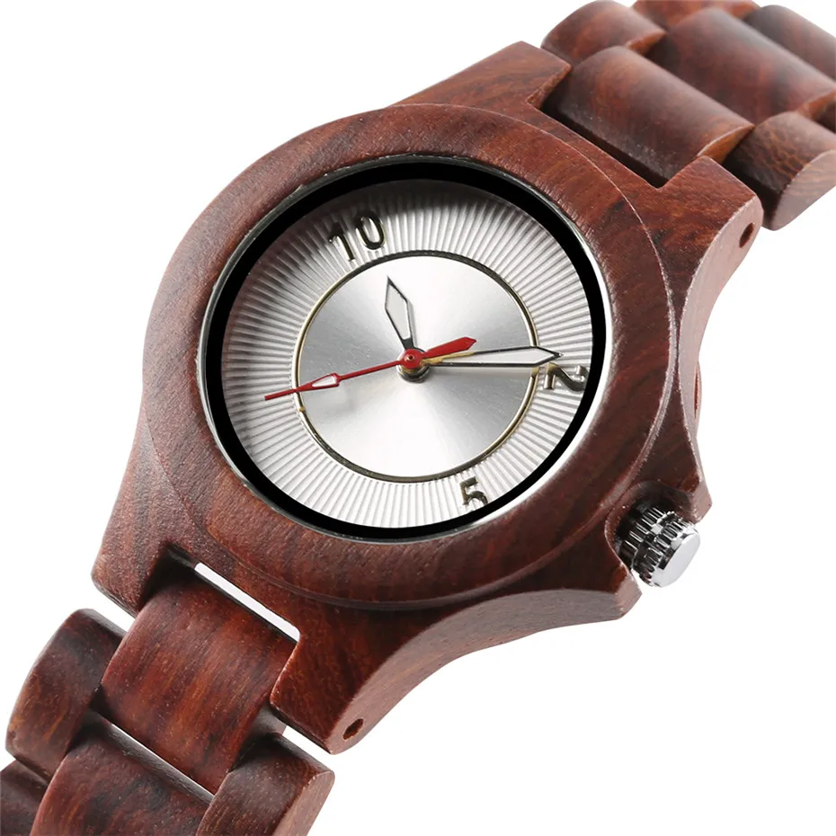 HIGH QUALITY Elegant Red Sandalwood Women's Bracelet Watches Small Dial Lady's Wrist Watch Thin Wooden Band Brac