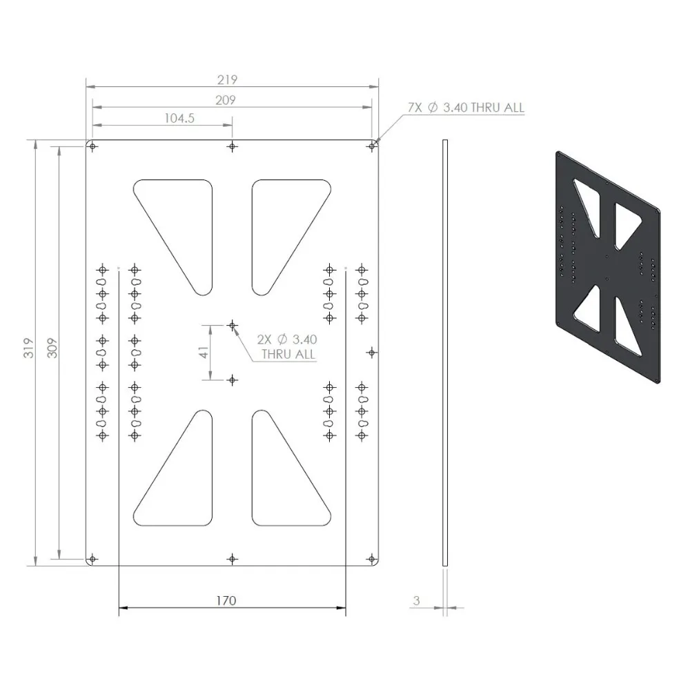 Silver Anodized Aluminum Y Carriage Plate XL 300x200mm Upgrade heated base plate RepRap Prusa i3 3D
