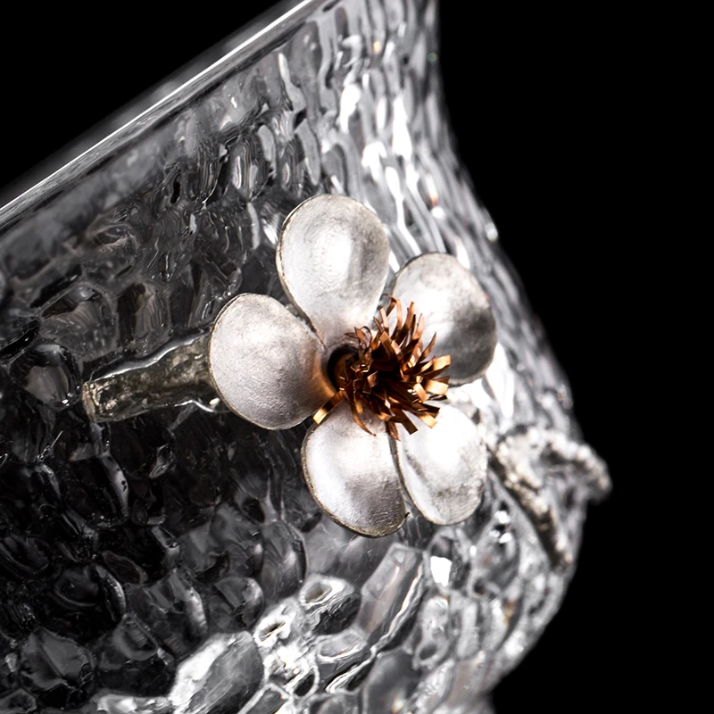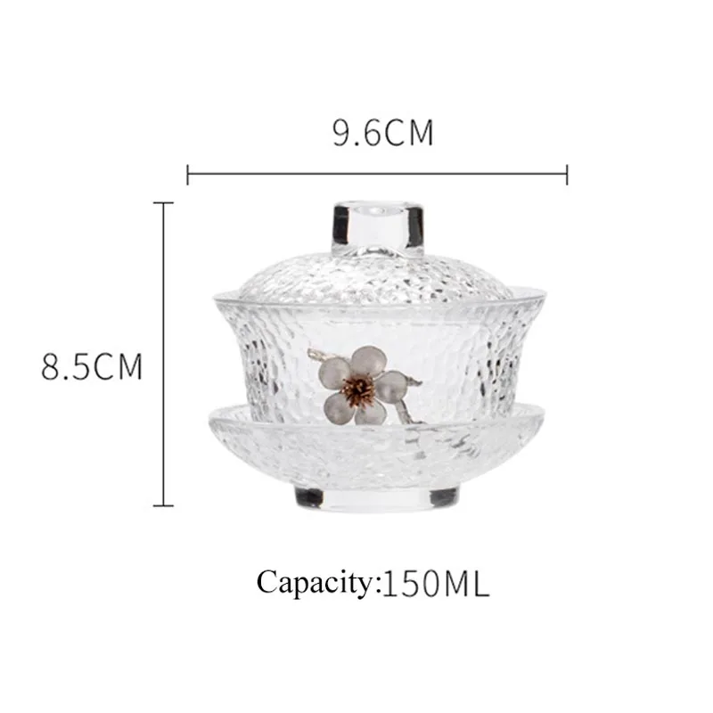 Thicken Heat Resistant Japanese Style Glass Gaiwan Teacup Chinese Tea Bowl Tin Plum Blossom Decorat