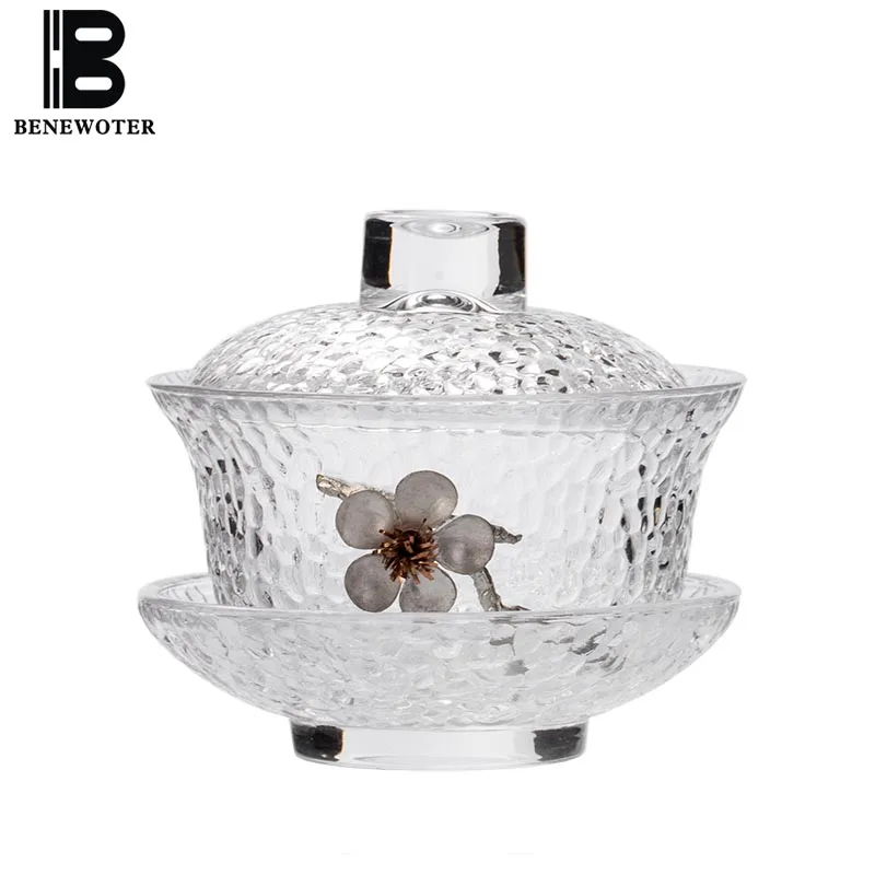 HIGH QUALITY Thicken Heat Resistant Japanese Style Glass Gaiwan Teacup Chinese Tea Bowl Tin Plum Blossom Decorat
