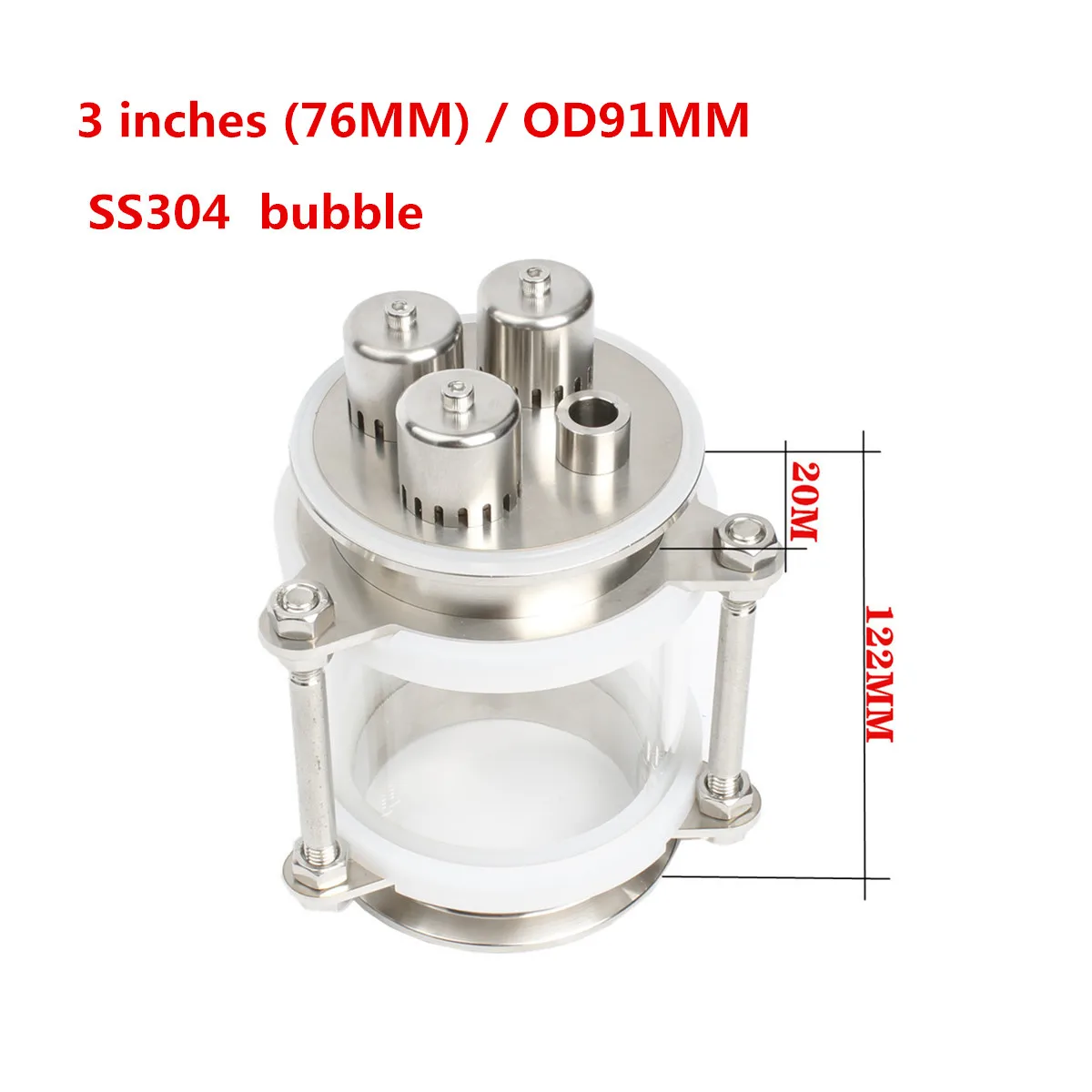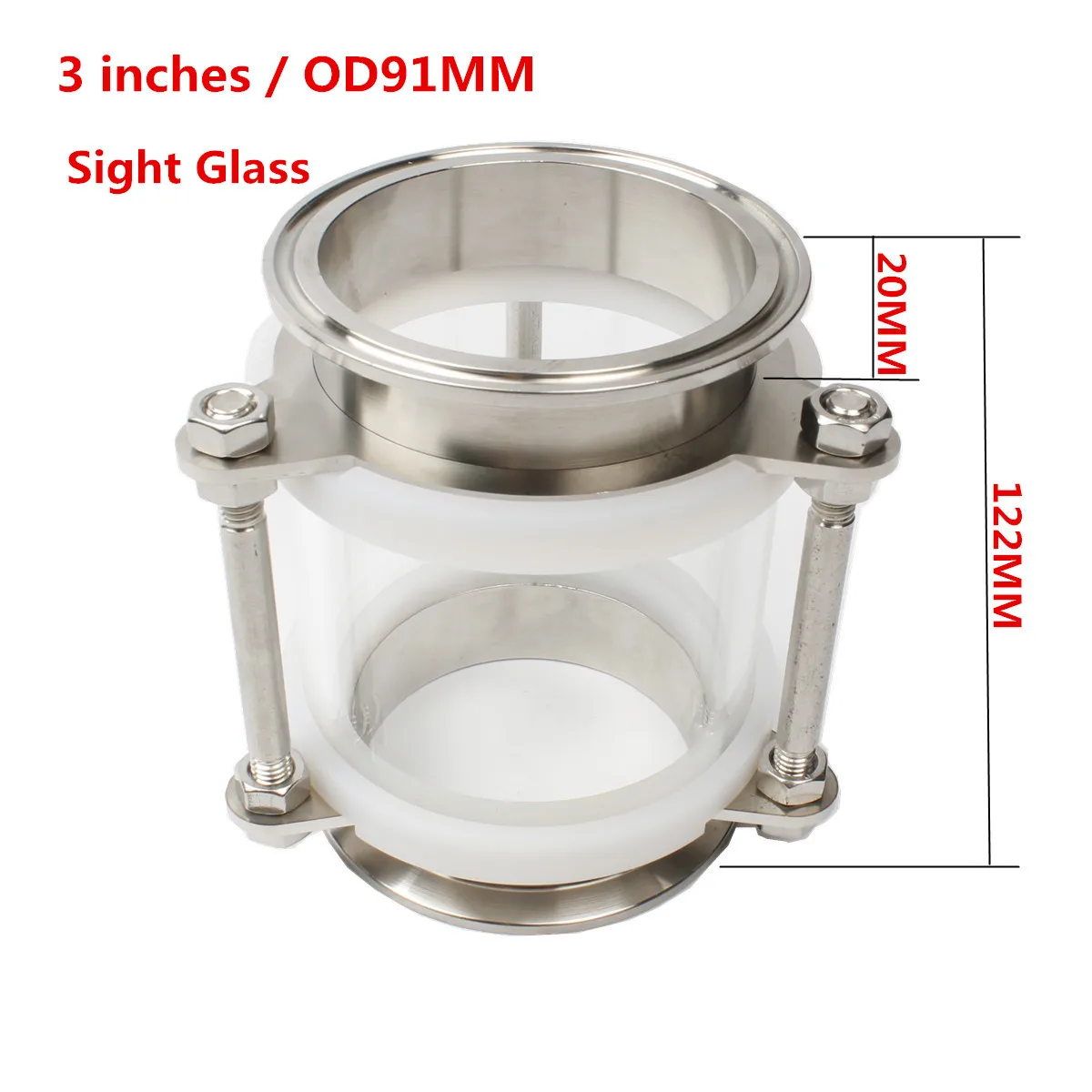 3"(76mm) / OD91mmDioptr Dephlegmator Moonshine reflux Stainless Steel Sight Glass Union triclamp Co
