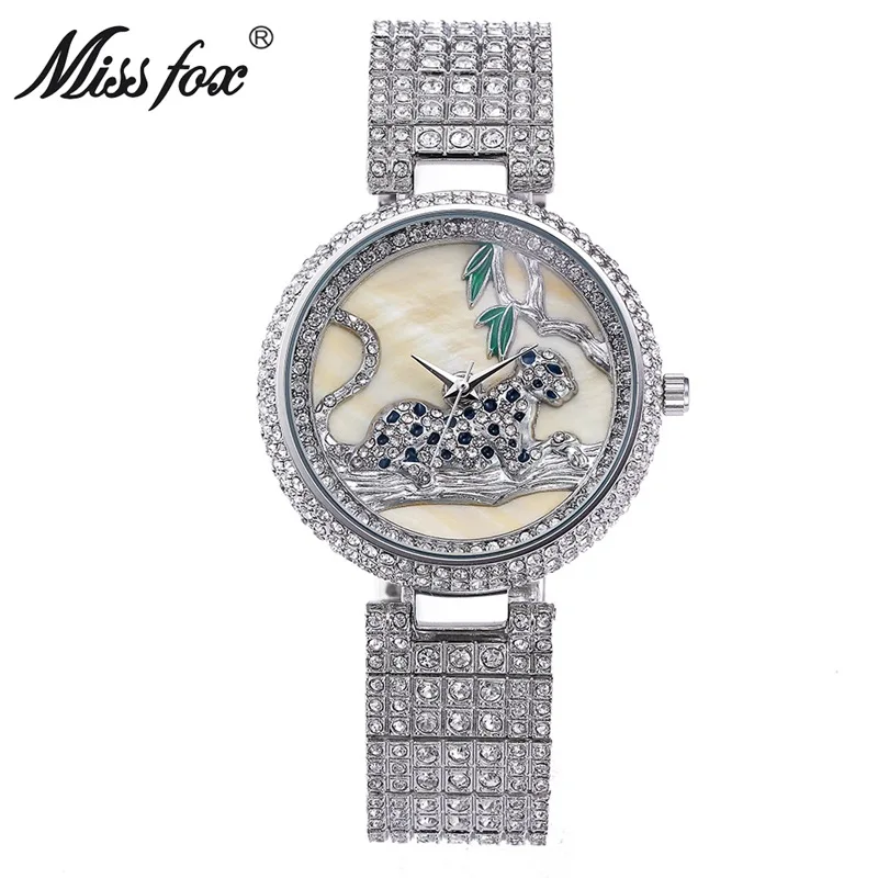 Miss Fox Luxury Watch Women Rhinestone Waterproof Bu Relogio Feminino Dourado Leopard Stainless Ste