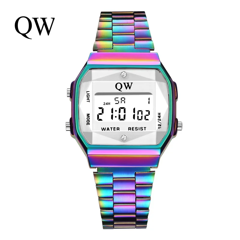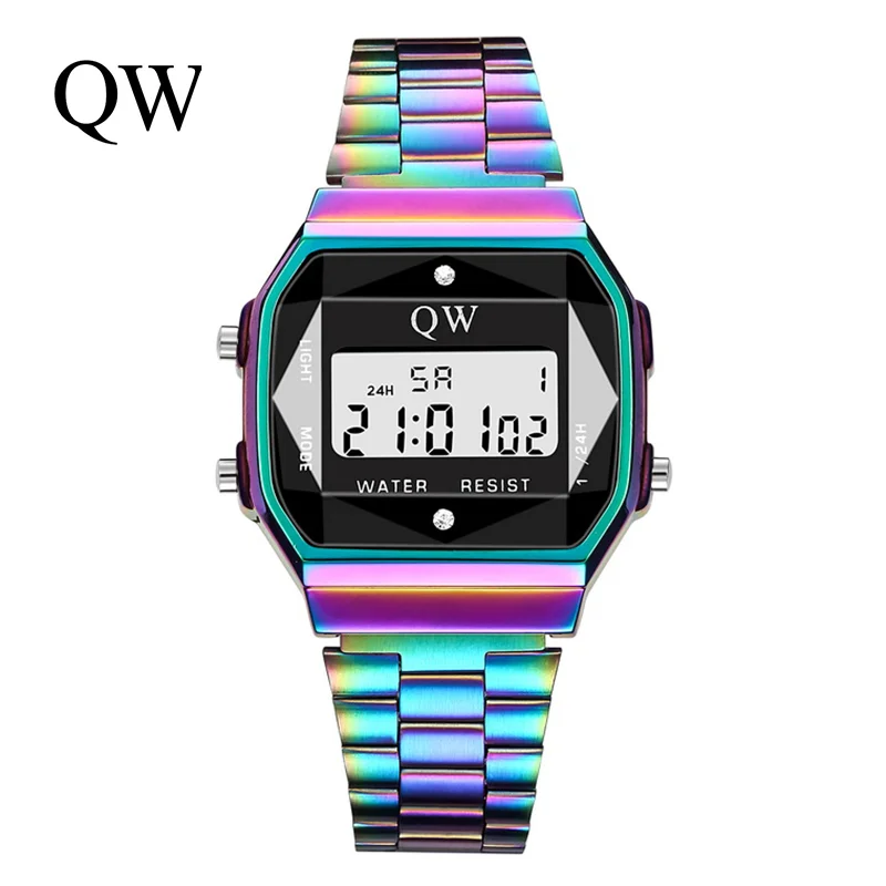 BEST QUALITY Woman Watch Digital Sports Man 2019 Luxury Brand Stainless Steel alarm clock Wristwatches QW Sports