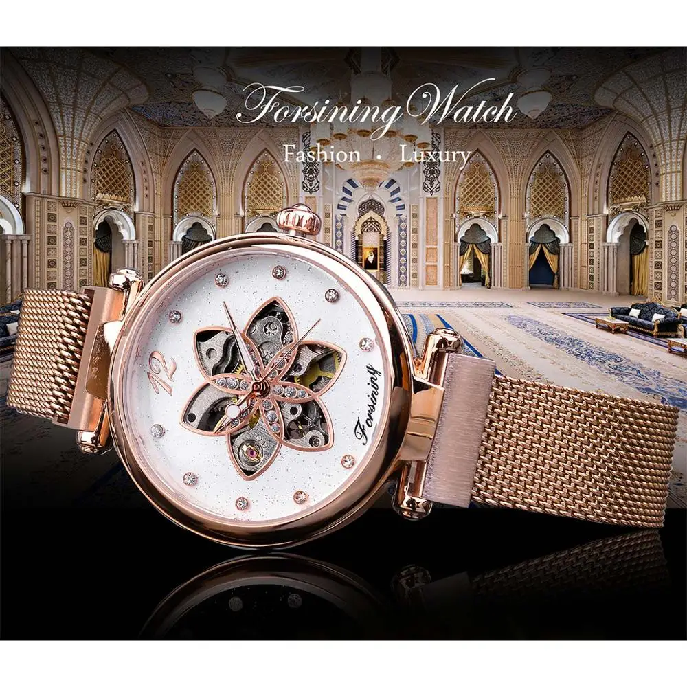 Forsining Women Watches Top Brand Luxury Mechanical Automatic Ladies Watches Creative Dial Mesh Wat
