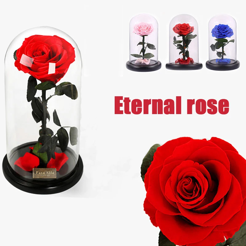 TOP Glass Cover Fresh Preserved Rose Flower Barbed Rose Flores For Wedding Marriage Home Party Decorati