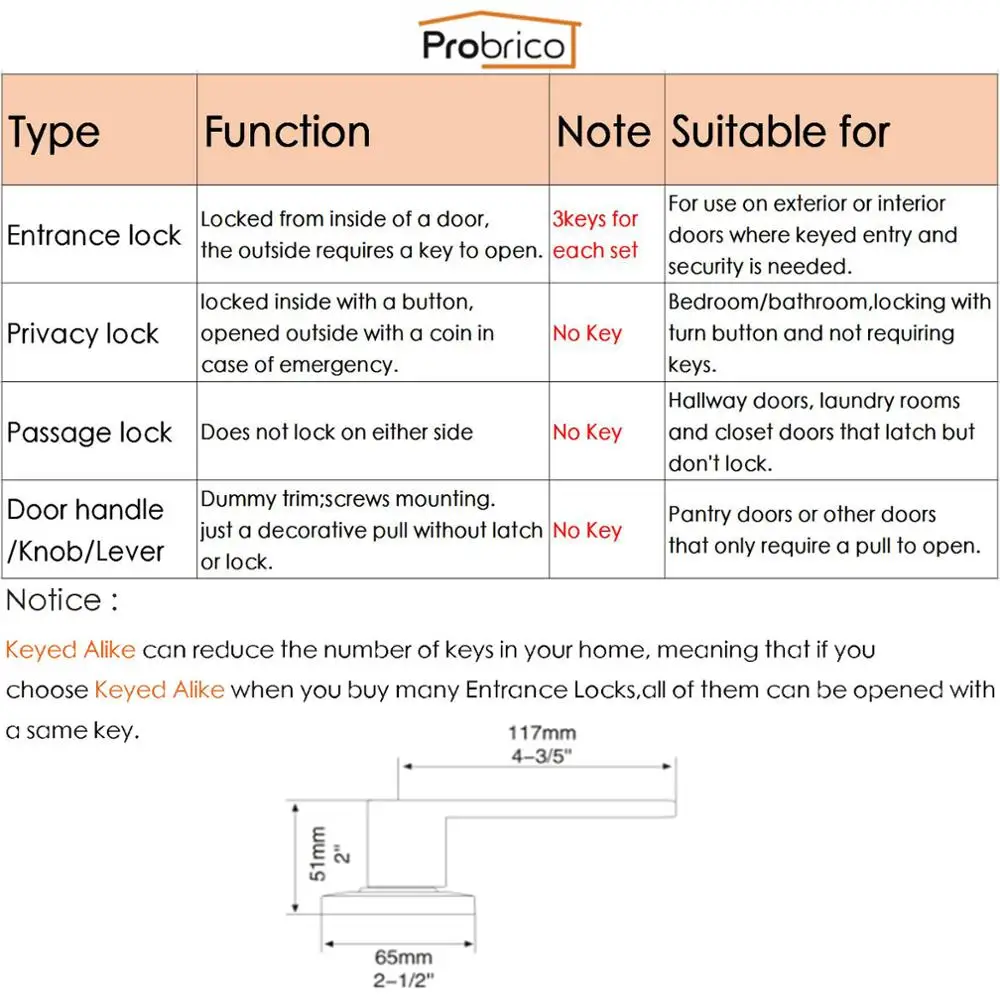 BEST Probrico Stainless Steel door handle Interior Bedroom door lock Silent door lock Entrance/Privacy/P