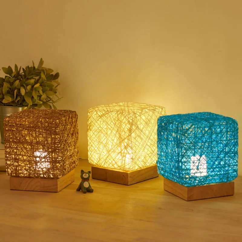 LED Rattan Square Night Light Table Lamp For Home Decoration Bedroom decorative Lighting Romantic P